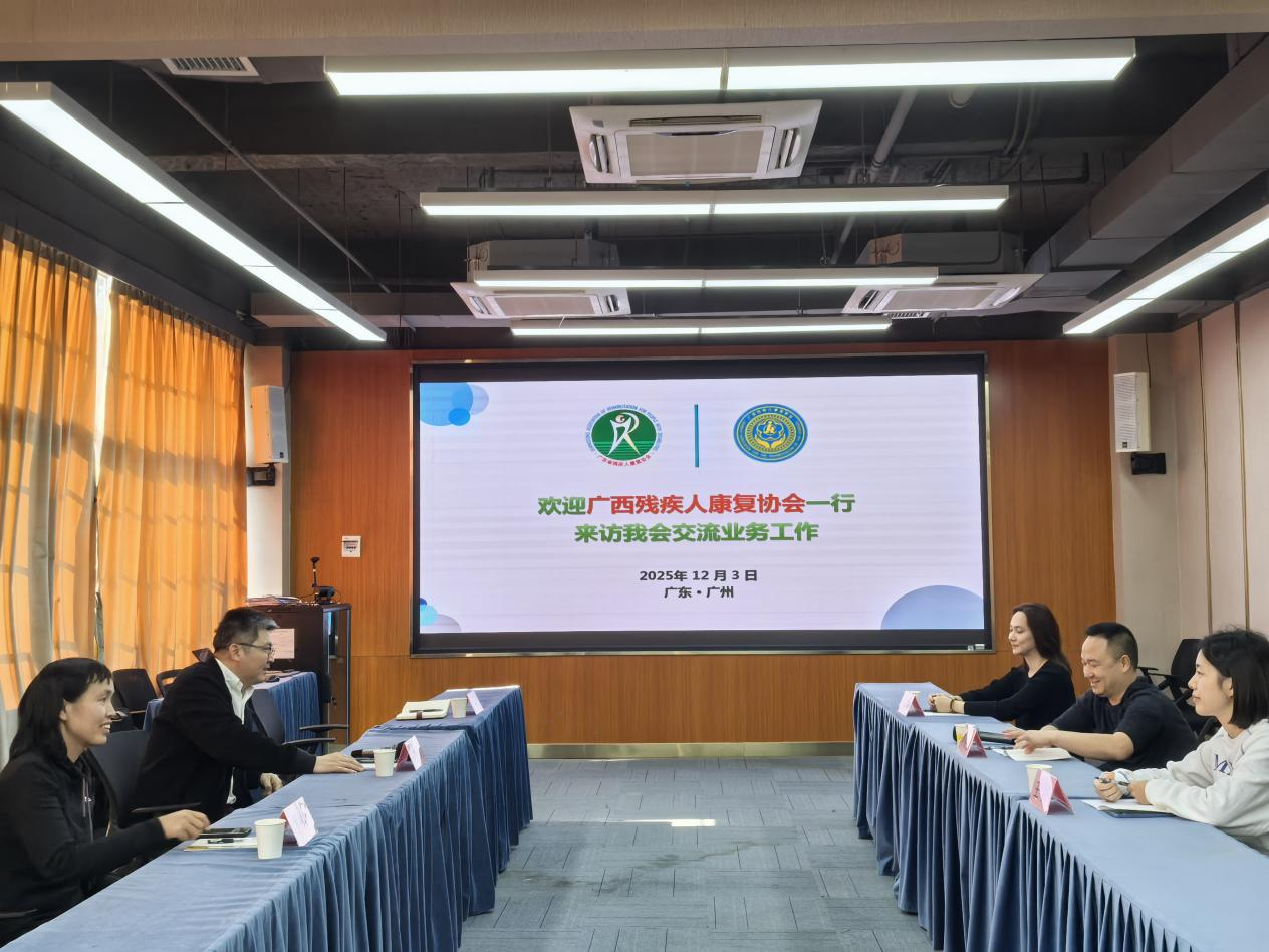 广西残疾人康复协会一行到访我会并开展业务...2025-12-05为助力残疾人事业高质量发展,增进粤桂两地康复工作交流协作,12月3日,广西残疾人康复协会秘书长蒋锦生一行3人到访我会。我会林仲新秘书长及秘书处工作人员热情接待来访宾客。在林仲新秘书长的陪同下,广西一行